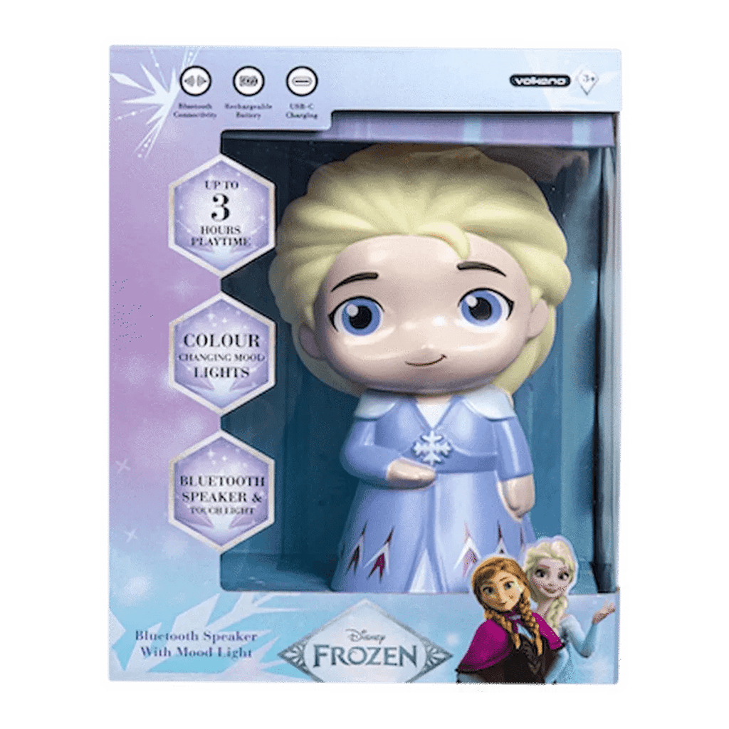 Bring a little Disney magic into your child's world with the Disney Frozen Bluetooth Speaker with Mood Light. This fun and functional device pairs quality audio with a glowing mood light, making it perfect for storytime, bedtime, or playtime. Whether playing their favourite Frozen soundtrack or soothing lullabies, the wireless design and soft ambient lighting add charm to any space. With Bluetooth 5.3 for seamless streaming and a rechargeable battery for up to 3 hours of playtime, this compact speaker is the ideal companion for every young Frozen fan.