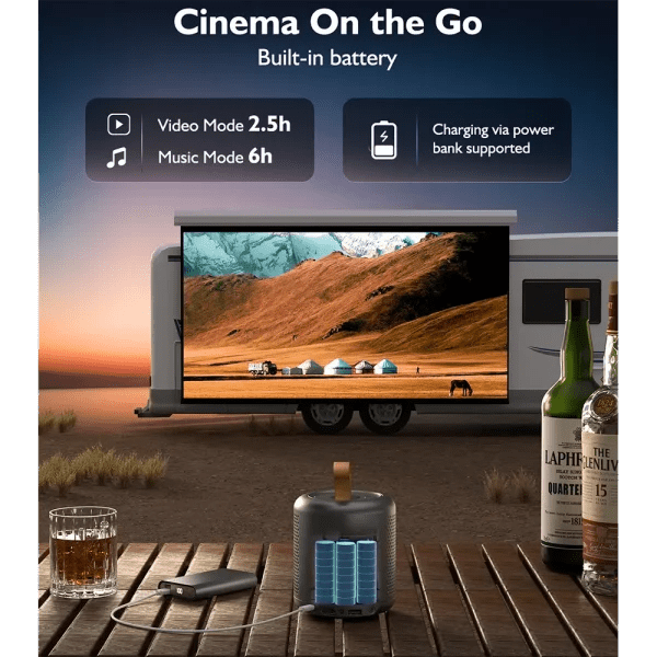 Compact & Portable Design: Measuring just 100×114mm and weighing 680g, the Dolphin projector is easy to carry, featuring a built-in strap for convenience.