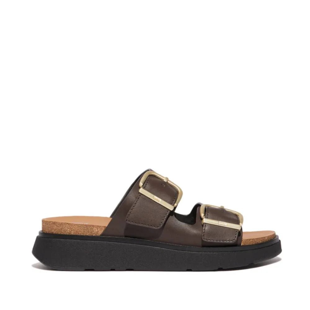 FitFlop Gen-FF Buckle Two-Bar Leather Slides Chocolate Brown