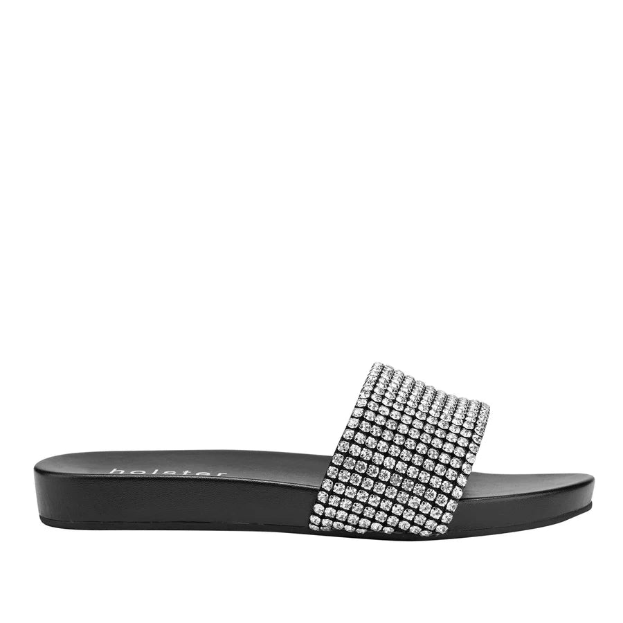 Inside, outside, beachside, poolside, you're destined for fun fashion moments in Luna. The ultimate vegan slide, featuring a stunning crystal encrusted upper paired with a super soft contoured footbed for supreme comfort. Slip on and glow from sunrise yoga to sunset drinks wearing Luna.