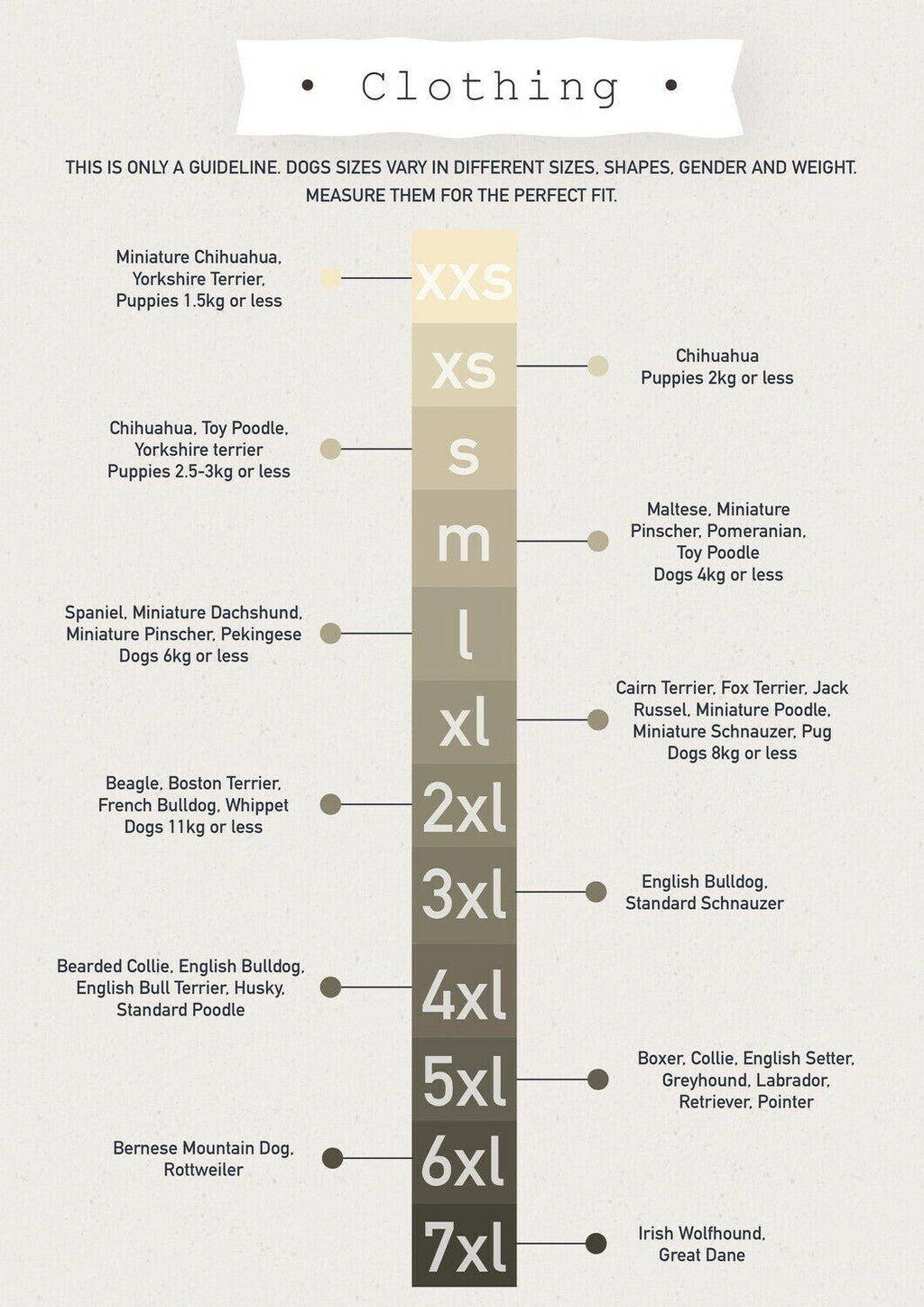 - M: Neck 24-28, Girth 40-46, back 27