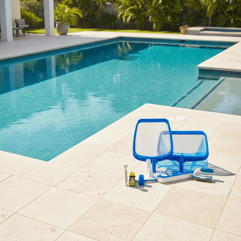 The Quality Pool Cleaning Starter (Handover) Kit, contains all the essential items that you will need to simplify regular maintenance of your new pool. It is also a great top up kit if your current pool maintenance kit needs a facelift!
